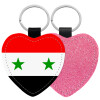 Syria flag, Μπρελόκ PU δερμάτινο glitter καρδιά ΡΟΖ
