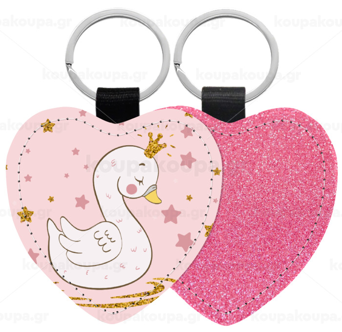 Crowned swan, Μπρελόκ PU δερμάτινο glitter καρδιά ΡΟΖ
