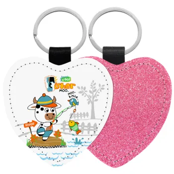 Kids Fisherman, Μπρελόκ PU δερμάτινο glitter καρδιά ΡΟΖ