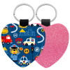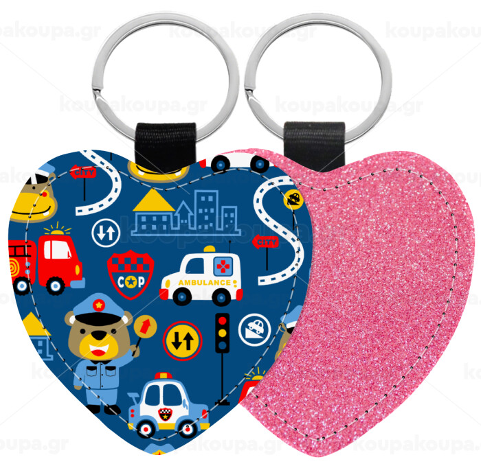 Rescue team cartoon, Μπρελόκ PU δερμάτινο glitter καρδιά ΡΟΖ