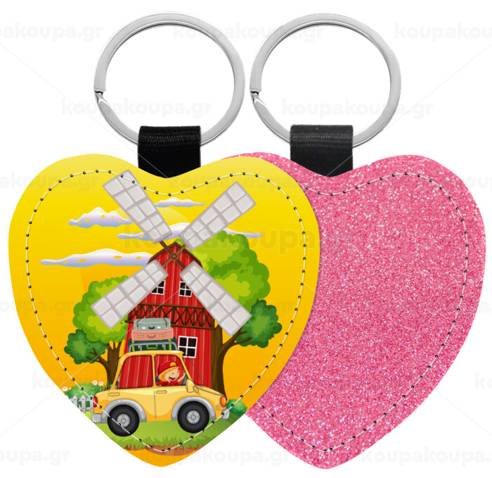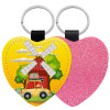 Toy car, Μπρελόκ PU δερμάτινο glitter καρδιά ΡΟΖ