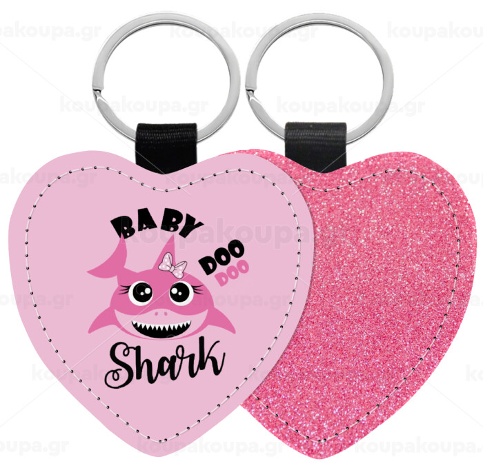 Baby Shark (girl), Μπρελόκ PU δερμάτινο glitter καρδιά ΡΟΖ