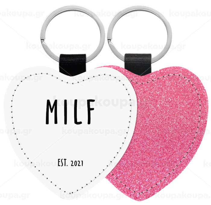 MILF, Μπρελόκ PU δερμάτινο glitter καρδιά ΡΟΖ