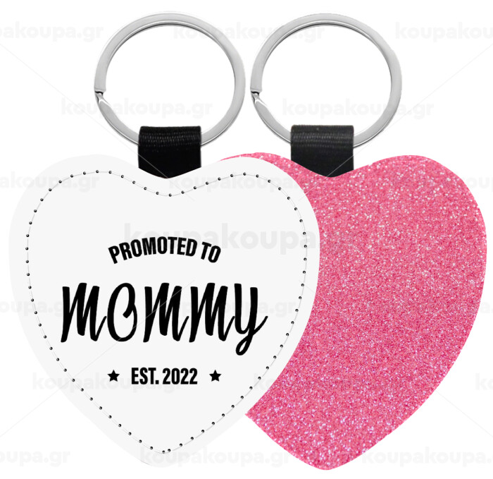 Promoted to Mommy, Μπρελόκ PU δερμάτινο glitter καρδιά ΡΟΖ
