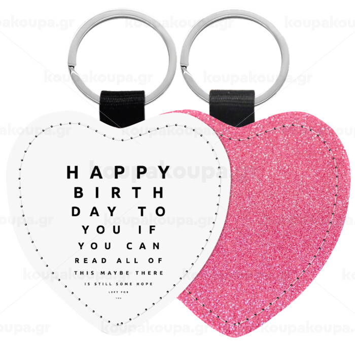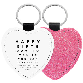 EYE tester happy birthday., Μπρελόκ PU δερμάτινο glitter καρδιά ΡΟΖ