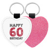 Leatherette keychain with glitter on one side and high resistance leatherette on the other. Safety ring for the keys.