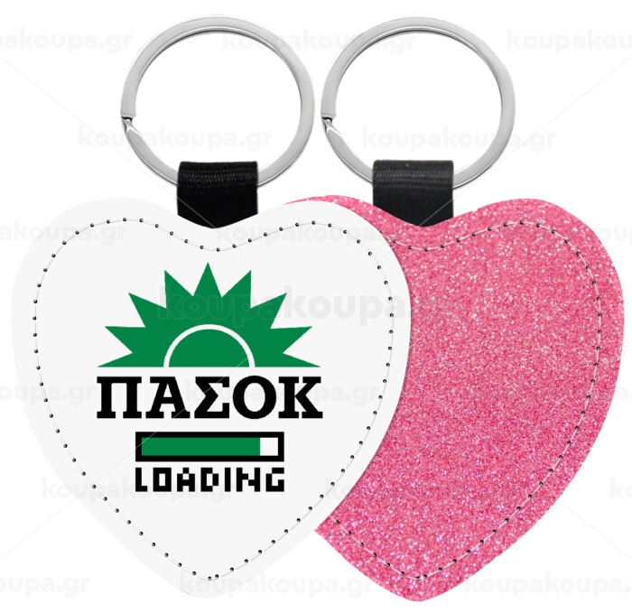 PASOK Loading, Μπρελόκ PU δερμάτινο glitter καρδιά ΡΟΖ