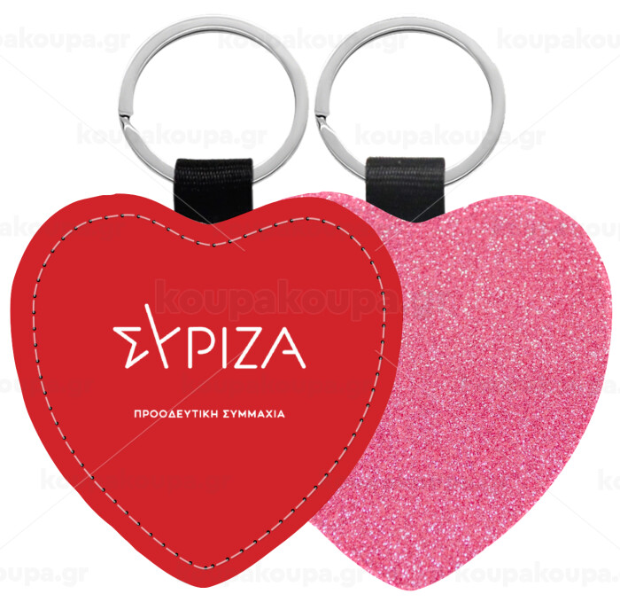Σύριζα το νέο, Μπρελόκ PU δερμάτινο glitter καρδιά ΡΟΖ