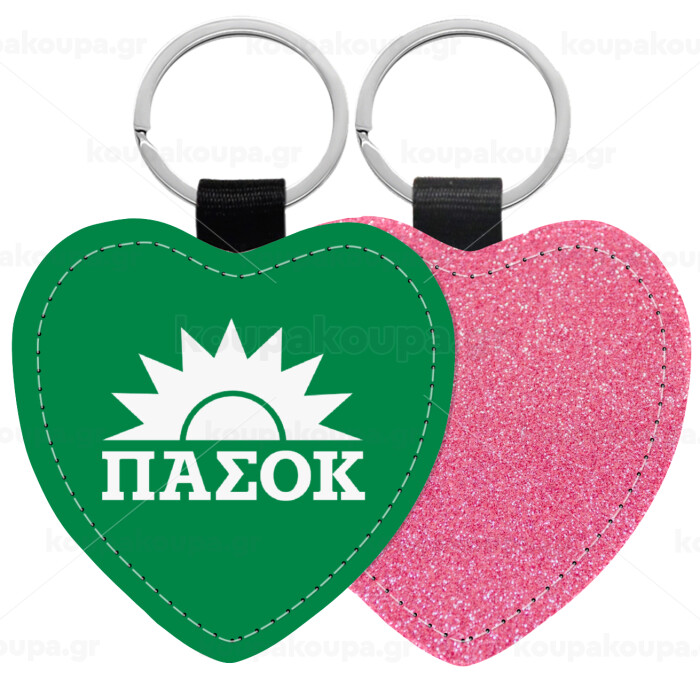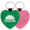 PASOK Green/White, Μπρελόκ PU δερμάτινο glitter καρδιά ΡΟΖ