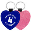 Έμβλημα Σχολικό μπλε κλασικό, Μπρελόκ PU δερμάτινο glitter καρδιά ΡΟΖ