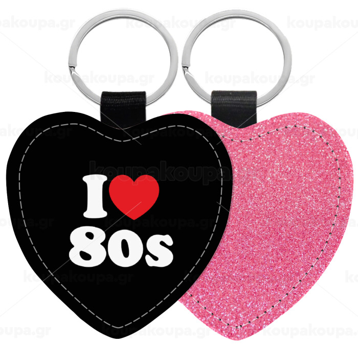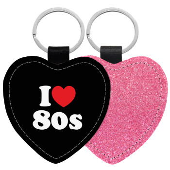 I Love 80s, Μπρελόκ PU δερμάτινο glitter καρδιά ΡΟΖ