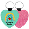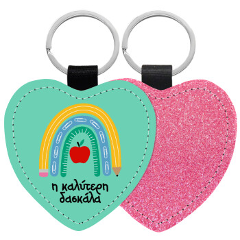 Η καλύτερη δασκάλα, Μπρελόκ PU δερμάτινο glitter καρδιά ΡΟΖ