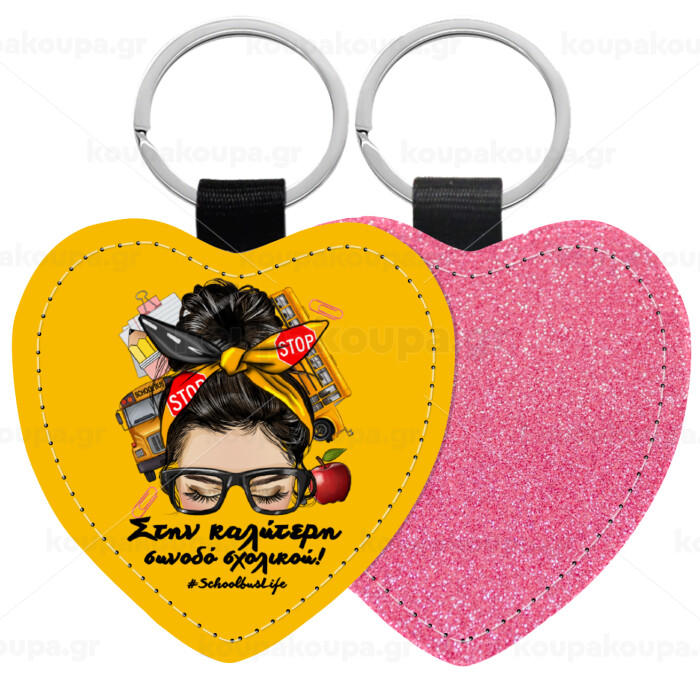 Στην καλύτερη συνοδό σχολικού!, Μπρελόκ PU δερμάτινο glitter καρδιά ΡΟΖ