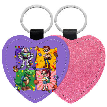 Back to the School Buzz & Friends, Μπρελόκ PU δερμάτινο glitter καρδιά ΡΟΖ