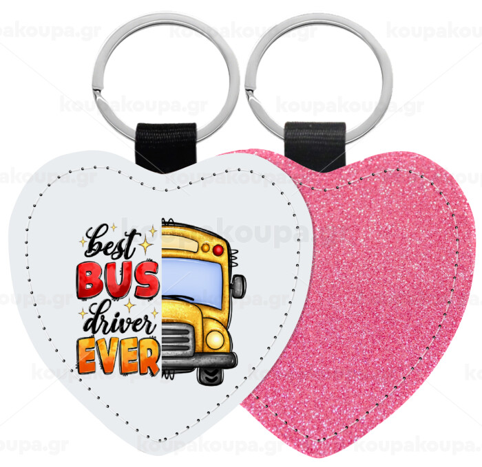 Best bus driver ever!, Μπρελόκ PU δερμάτινο glitter καρδιά ΡΟΖ