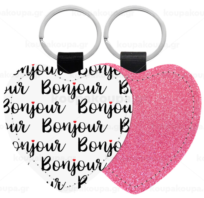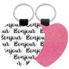 Bonjour, Μπρελόκ PU δερμάτινο glitter καρδιά ΡΟΖ