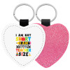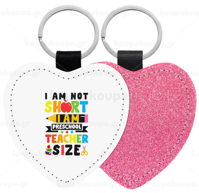 I Am Not Short I Am Preschool Teacher Size, Μπρελόκ PU δερμάτινο glitter καρδιά ΡΟΖ