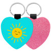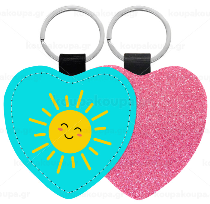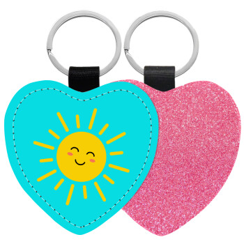 Happy sun, Μπρελόκ PU δερμάτινο glitter καρδιά ΡΟΖ