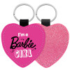 I'm Barbie girl, Μπρελόκ PU δερμάτινο glitter καρδιά ΡΟΖ