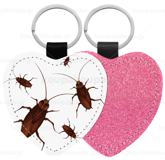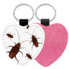 Blattodea, Μπρελόκ PU δερμάτινο glitter καρδιά ΡΟΖ