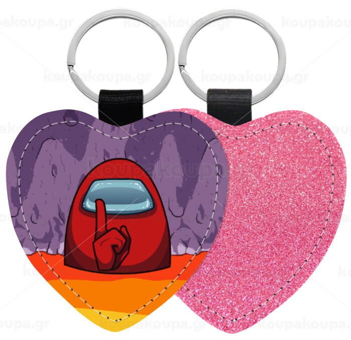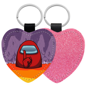 Among US, Μπρελόκ PU δερμάτινο glitter καρδιά ΡΟΖ