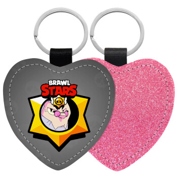 Brawl Stars Byron, Μπρελόκ PU δερμάτινο glitter καρδιά ΡΟΖ