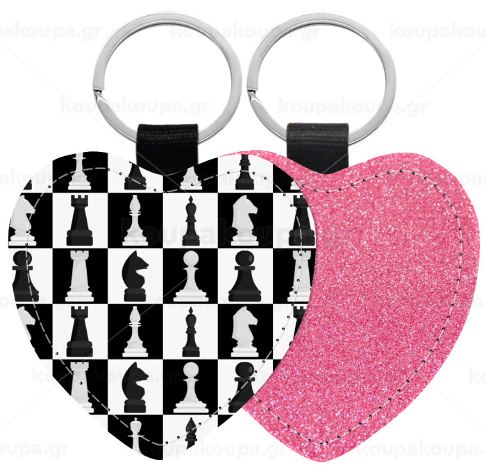 Chess set, Μπρελόκ PU δερμάτινο glitter καρδιά ΡΟΖ
