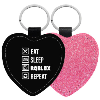 Eat, Sleep, Roblox, Repeat, Μπρελόκ PU δερμάτινο glitter καρδιά ΡΟΖ