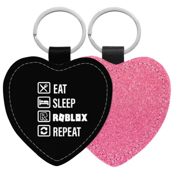 Eat, Sleep, Roblox, Repeat, Μπρελόκ PU δερμάτινο glitter καρδιά ΡΟΖ