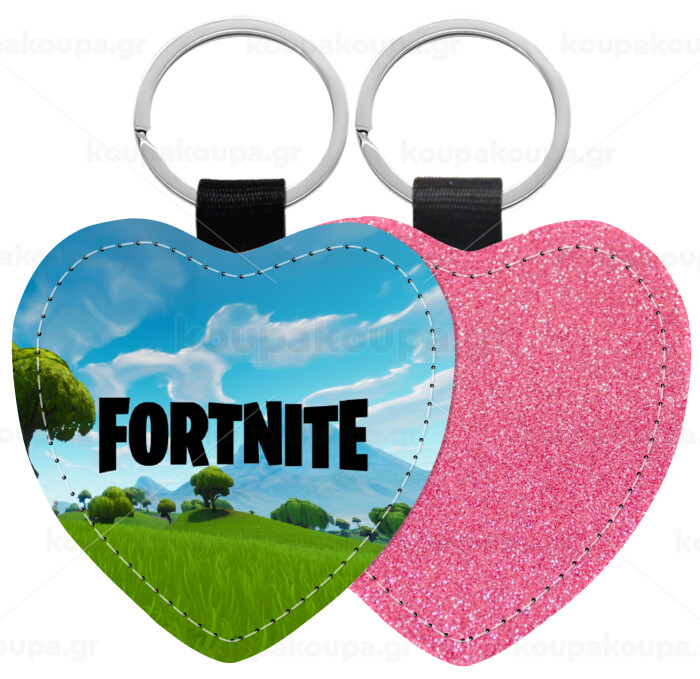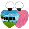 Fortnite landscape, Μπρελόκ PU δερμάτινο glitter καρδιά ΡΟΖ