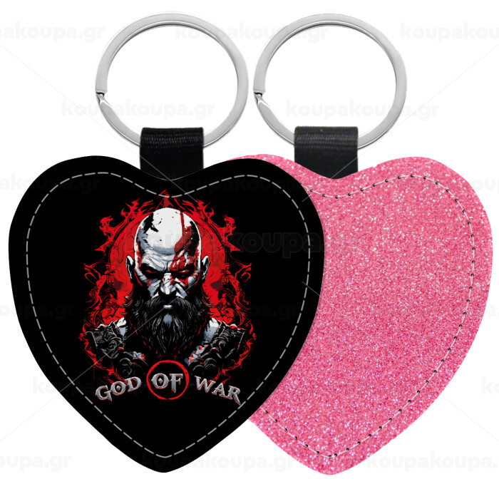 God of war, Μπρελόκ PU δερμάτινο glitter καρδιά ΡΟΖ