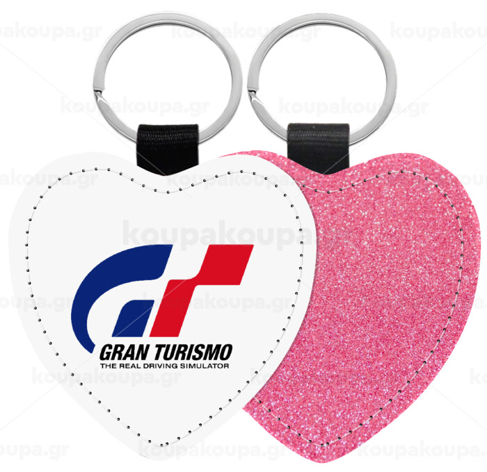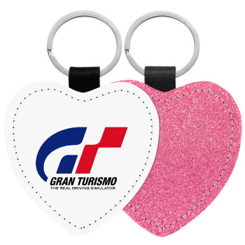 gran turismo, Μπρελόκ PU δερμάτινο glitter καρδιά ΡΟΖ