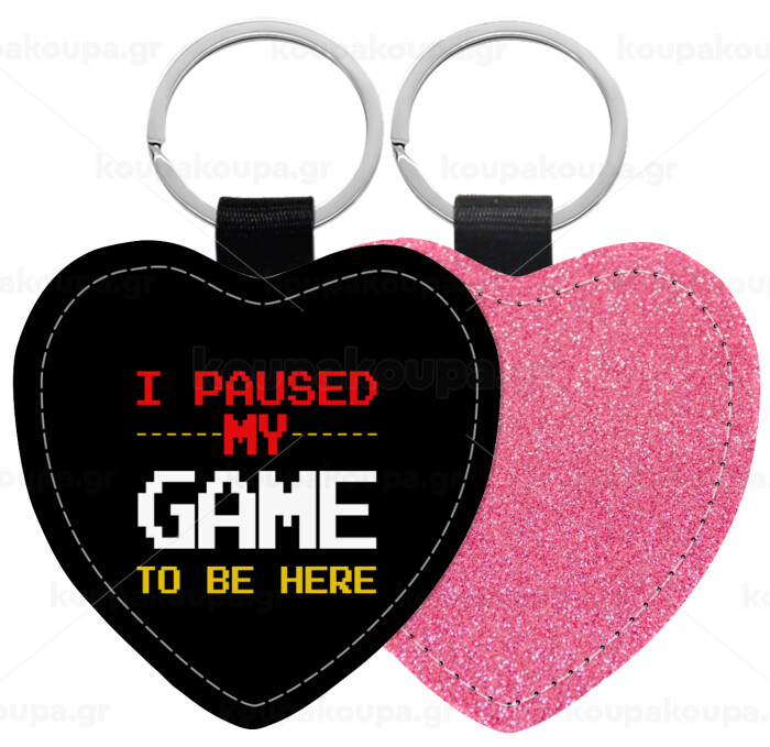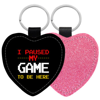 I paused my game to be here, Μπρελόκ PU δερμάτινο glitter καρδιά ΡΟΖ