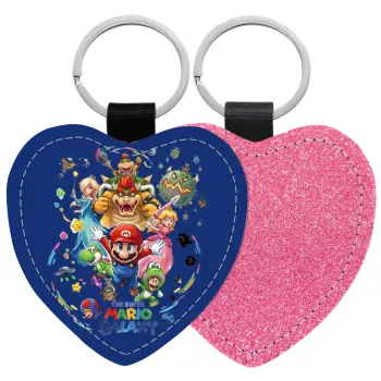 Leatherette keychain with glitter on one side and high resistance leatherette on the other. Safety ring for the keys.
