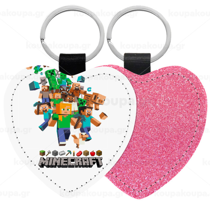 Minecraft adventure, Μπρελόκ PU δερμάτινο glitter καρδιά ΡΟΖ