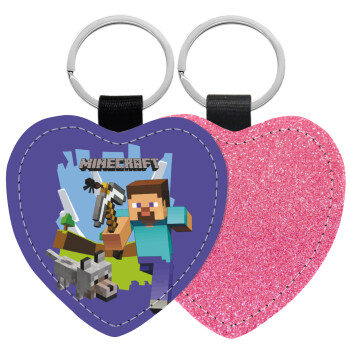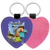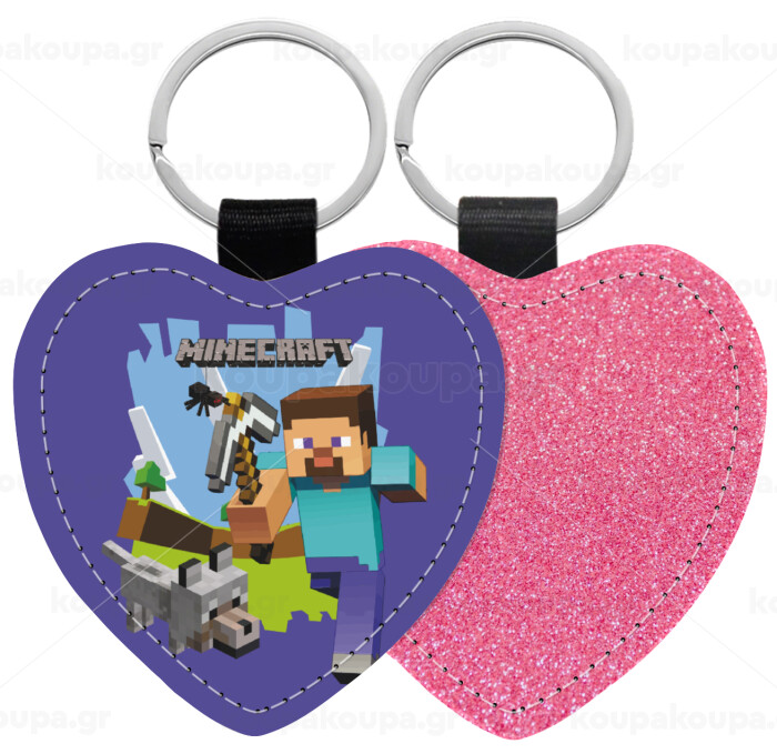 Minecraft Alex, Μπρελόκ PU δερμάτινο glitter καρδιά ΡΟΖ