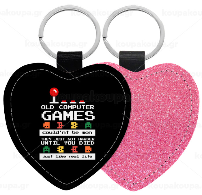 OLD computer games couldn't be won just like real life!, Μπρελόκ PU δερμάτινο glitter καρδιά ΡΟΖ