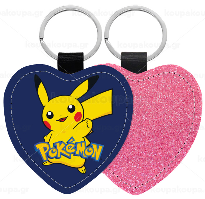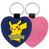 Pokemon pikachu, Μπρελόκ PU δερμάτινο glitter καρδιά ΡΟΖ