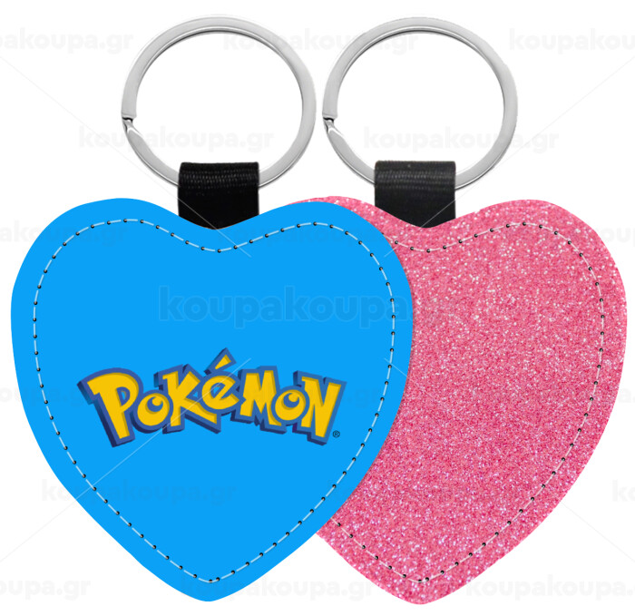 Pokemon, Μπρελόκ PU δερμάτινο glitter καρδιά ΡΟΖ