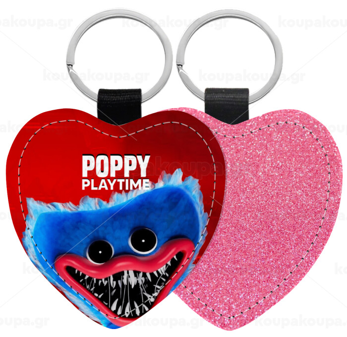 Poppy Playtime Huggy wuggy, Μπρελόκ PU δερμάτινο glitter καρδιά ΡΟΖ