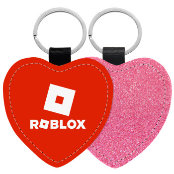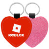 Roblox red, Μπρελόκ PU δερμάτινο glitter καρδιά ΡΟΖ