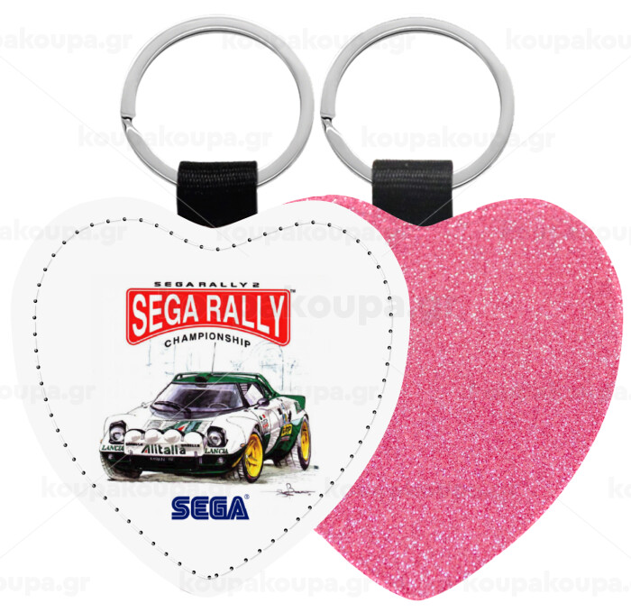 SEGA RALLY 2, Μπρελόκ PU δερμάτινο glitter καρδιά ΡΟΖ