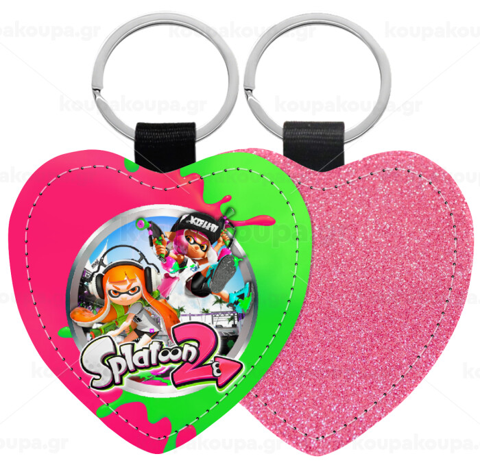 Splatoon 2, Μπρελόκ PU δερμάτινο glitter καρδιά ΡΟΖ