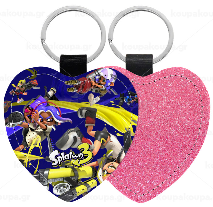 Splatoon 3, Μπρελόκ PU δερμάτινο glitter καρδιά ΡΟΖ