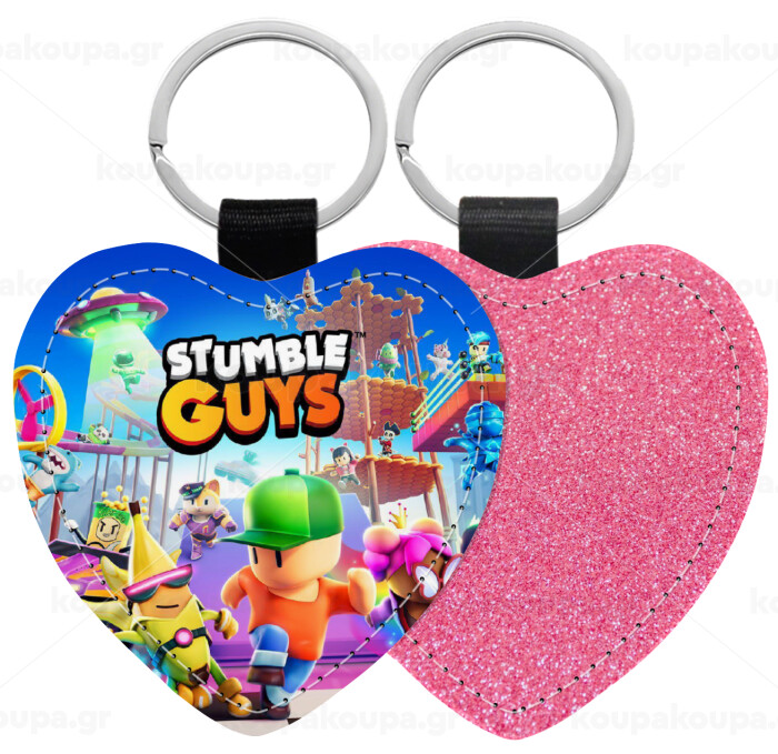 Stumble Guys, Μπρελόκ PU δερμάτινο glitter καρδιά ΡΟΖ