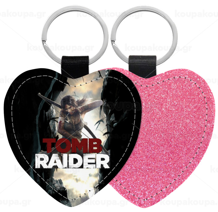 Tomb raider, Μπρελόκ PU δερμάτινο glitter καρδιά ΡΟΖ
