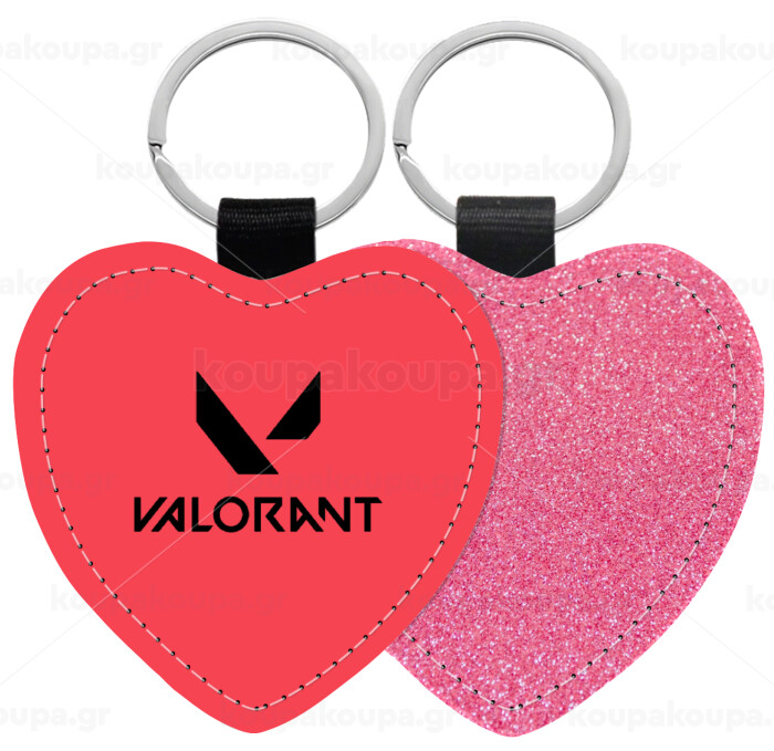 Valorant, Μπρελόκ PU δερμάτινο glitter καρδιά ΡΟΖ