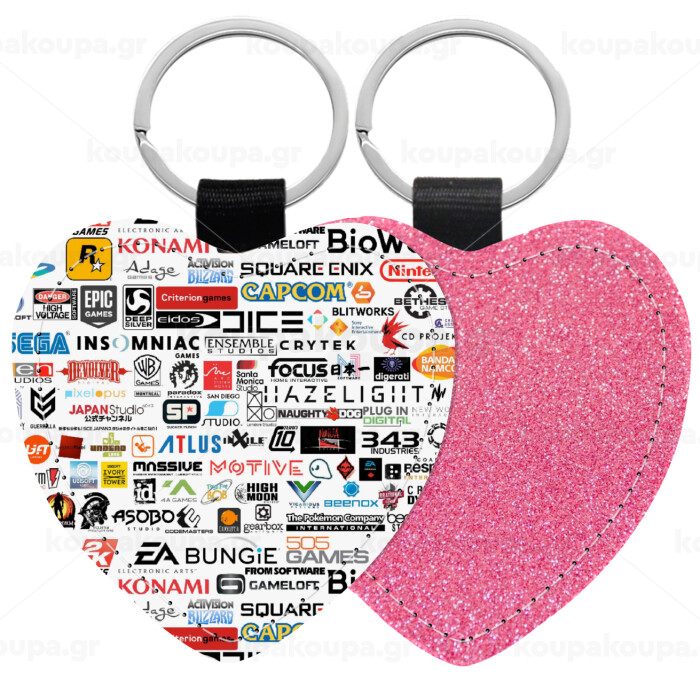 Video Game Studio Logos, Μπρελόκ PU δερμάτινο glitter καρδιά ΡΟΖ
