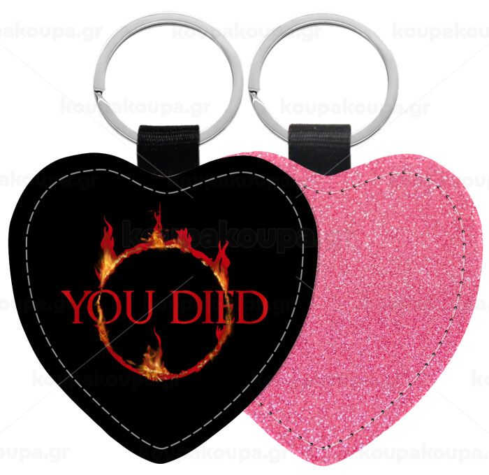 You Died | Dark Souls, Μπρελόκ PU δερμάτινο glitter καρδιά ΡΟΖ
