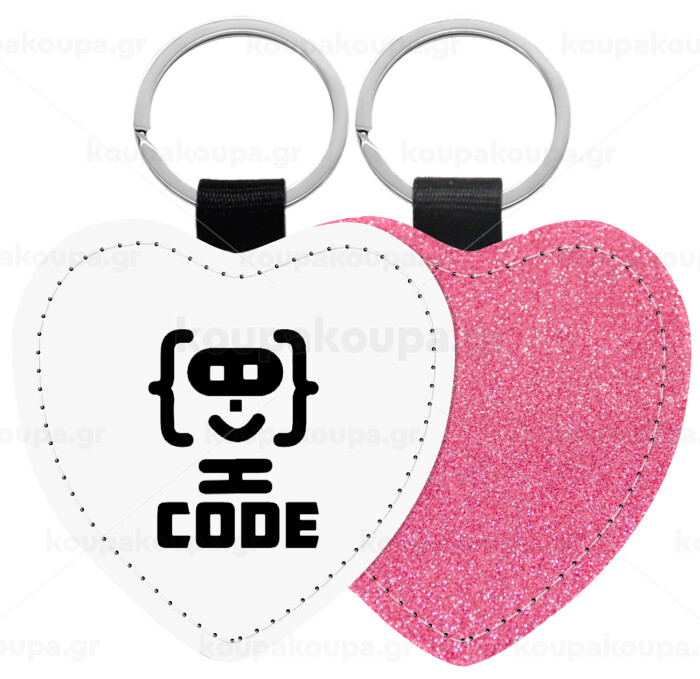 Code Heroes symbol, Μπρελόκ PU δερμάτινο glitter καρδιά ΡΟΖ